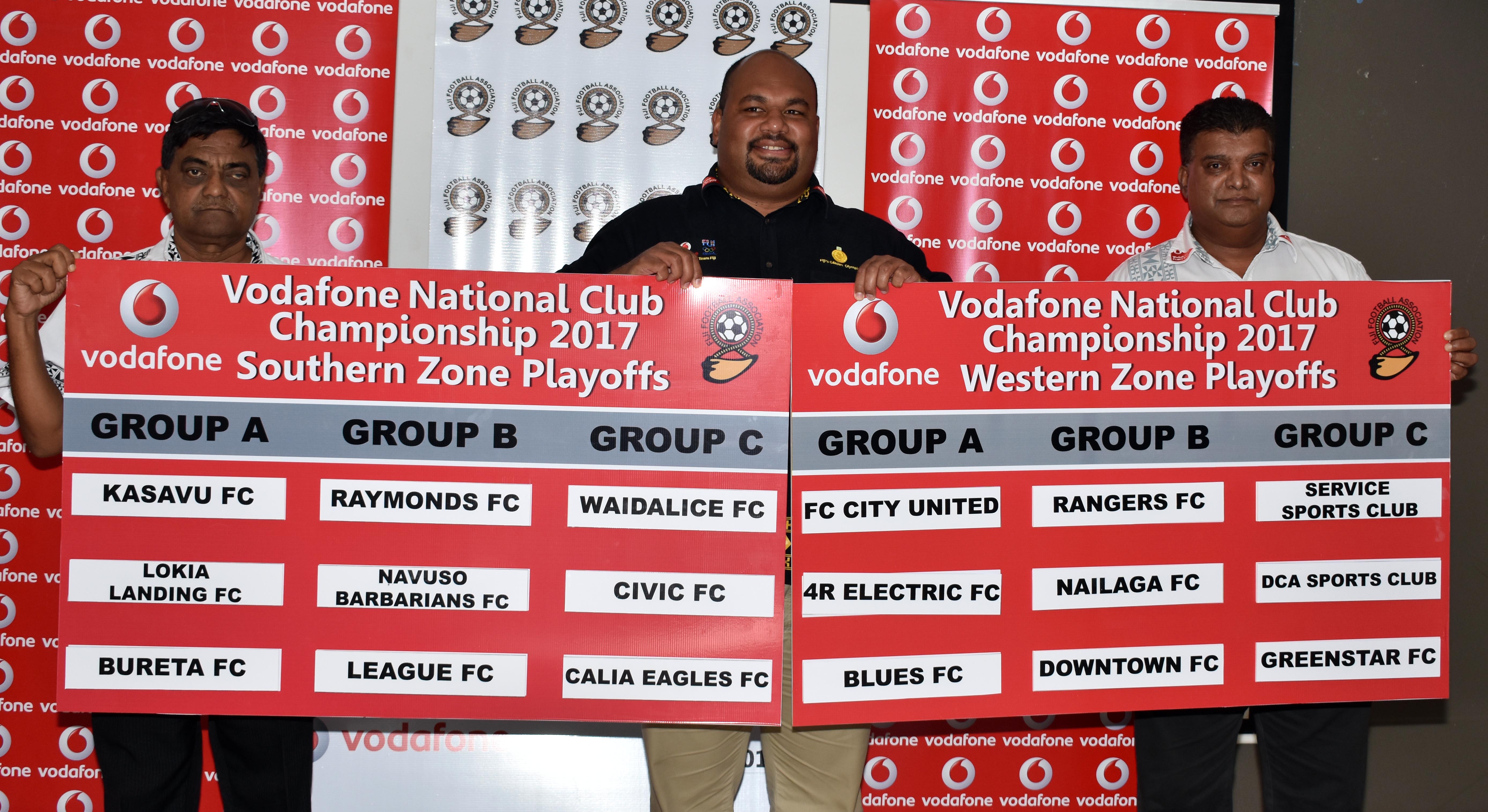 The Vodafone National Club championship zonal play off will be played southern zone will be played at Fiji FA Academy in Vatuwaqa and the western zone will be held at Prince Charles Park in Nadi.