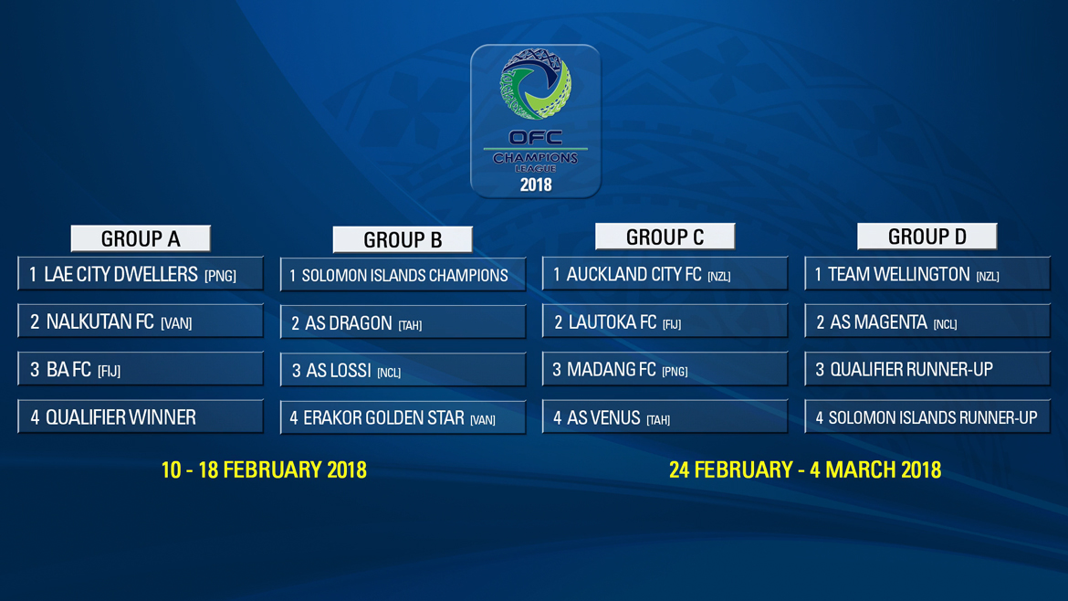 The Vodafone Premier League champions are drawn in Group C with the defending and eight-time champions Auckland City FC, Papua New Guinea runner-up Madang FC and AS Venus from Tahiti.